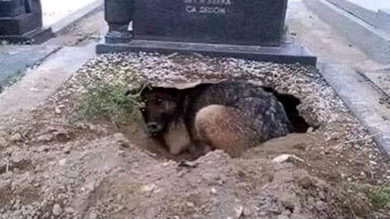 Nekaj dni kasneje so ga poklicali uslužbenci pokopališča in mu povedali, da je pes izkopal luknjo nad očetovim grobom. Prišel je na pokopališče in prevzel psa. Toda naslednji dan je pes spet pobegnil na pokopališče. In tako je nadaljevalo – pobegnil je trikrat, dokler sin ni bil prepričan, da psa pusti ob očetovem grobu.